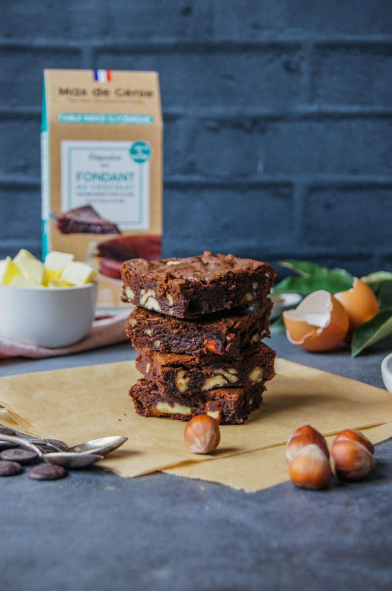 Farines* (lupin, noisette* (11%), sarrasin*), poudre de chocolat* (30%) (sucre de fleur de coco*, cacao 32% minimum**), sucre de fleur de coco*, éclats de noisettes* (11%), poudre à lever* (amidon de maïs*, bicarbonate de sodium, tartrate monopotassique).